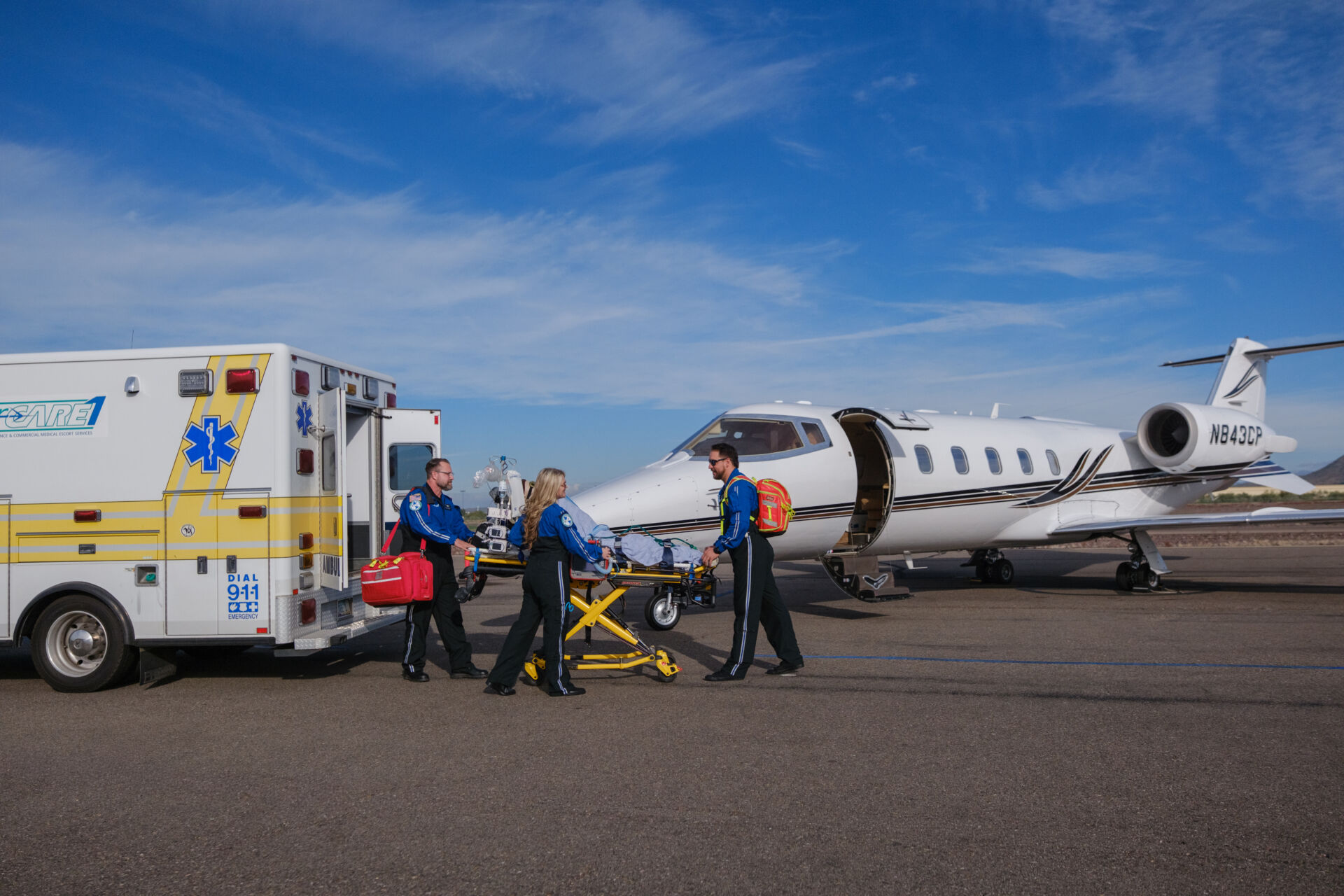 For each air ambulance transport mission, our experienced in-flight team includes two highly-qualified pilots and two highly-qualified medical crew members. We also offer a welcoming environment where family members are encouraged to accompany their loved one during the flight. Family members report this to be beneficial for all involved, as they each gain reassurance and peace of mind when in one another’s company and can see first-hand the extra steps we take to uphold the highest standards of safety, medical treatment, and compassionate care.